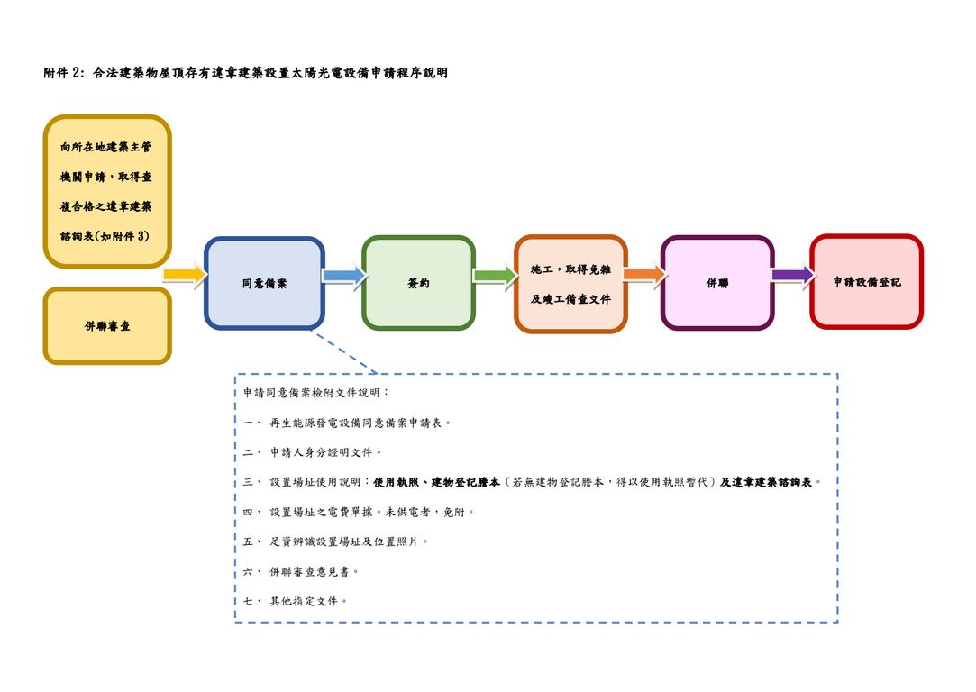 經核定後不影響公共安全的情況下即可適用「太陽光電免請領雜項執照處理原則」。